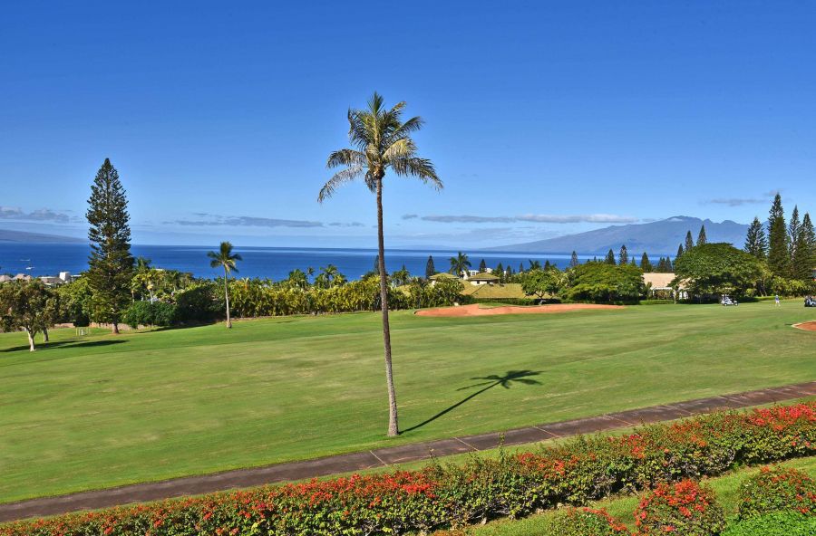 Undoubtedly the best view at The Masters - spectacular panoramic ocean, golf course and island views of both Lanai and Molokai. Magnificent sunsets year-round. The unit also overlooks the 9th Fairway of the Royal Kaanapali Golf Course. Private unit with central air conditioning three zones. Corian countertops and updated kitchen appliances. On demand tankless hot water heater and plenty of storage space! Extra large parking area with large space to turnaround. The Masters is an exclusive luxury gated community on the Kaanapali Hillside offering 38 acres of lush landscaping, swimming pools, hot tubs, tennis courts, large park areas and on-site security.